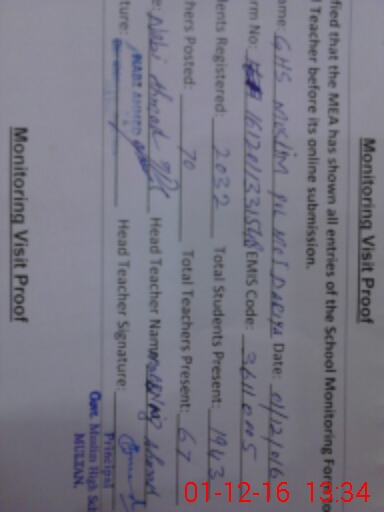 | EMIS Code: 36110005 | Name of School: GHS MUSLIM PUL MOJ DARIYA OPP. SPORTS GROUND MULTAN | |||