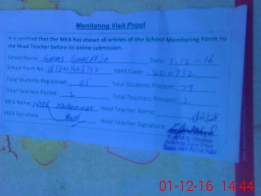 | Attendance Register | Head Teacher | MEA with School | Visit Proof |