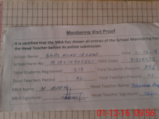 | EMIS Code: 31310478 | Name of School: GGPS MIAN IRSHAD AHMAD | |||