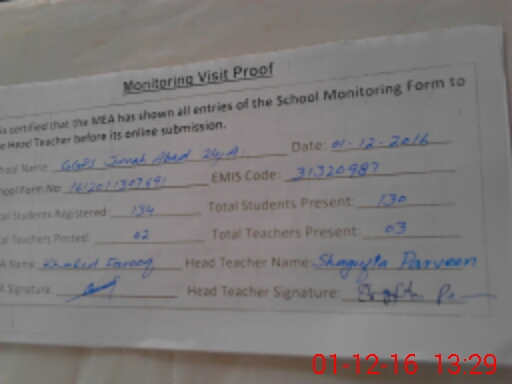 | Certified that this School was Inspected by the Undersigned MEA/DMO Today and the Information Stated Above is as Per Record. | |||||
