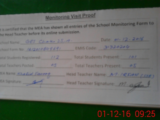 | EMIS Code: 31320204 | Name of School: GES CHAK 25/A | |||