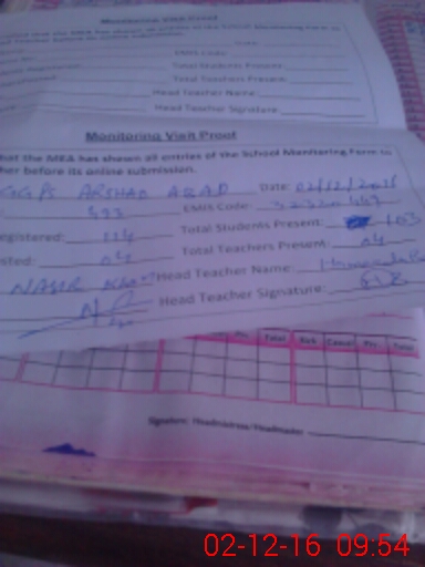 | Attendance Register | Head Teacher | MEA with School | Visit Proof |