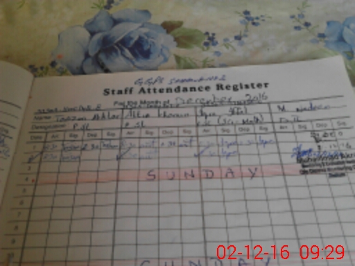 | CNIC | Full Name | Designation | R/C | Absence During Last Calender Month |
