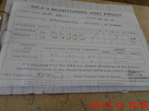 | Attendance Register | Head Teacher | MEA with School | Visit Proof |