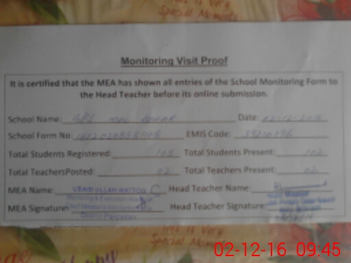 | EMIS Code: 39210196 | Name of School: GPS MAL BOHAR PO PAKPATTAN | |||