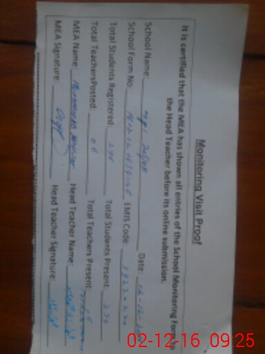 | Certified that this School was Inspected by the Undersigned MEA/DMO Today and the Information Stated Above is as Per Record. | |||||