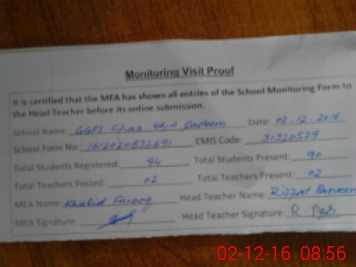 | EMIS Code: 31320529 | Name of School: GGPS CHAK NO.46/A QADEEM | |||