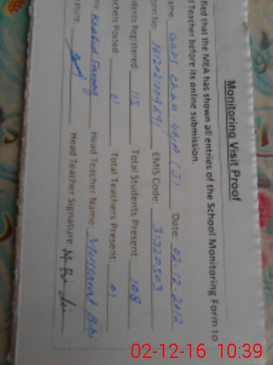 | EMIS Code: 31320503 | Name of School: GGPS CHAK NO.46/JADEED | |||