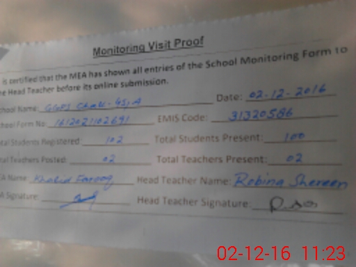 | Attendance Register | Head Teacher | MEA with School | Visit Proof |