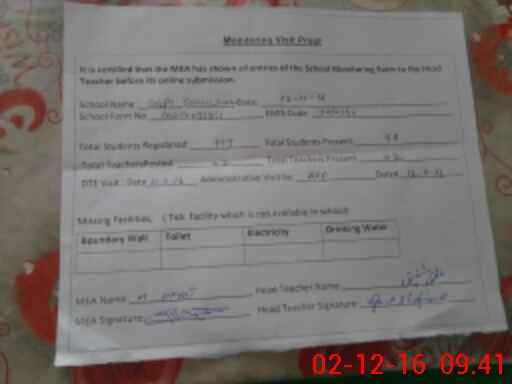 | Certified that this School was Inspected by the Undersigned MEA/DMO Today and the Information Stated Above is as Per Record. | |||||