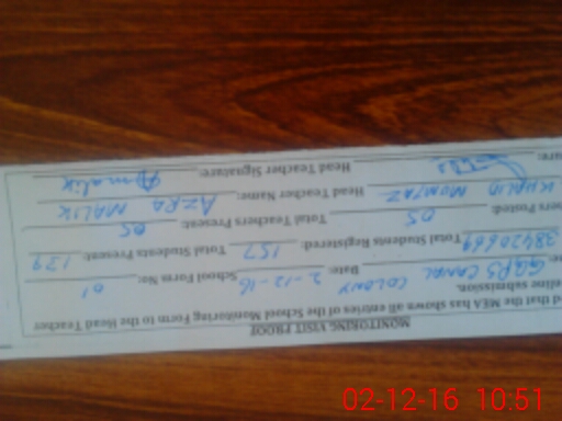 | Attendance Register | Head Teacher | MEA with School | Visit Proof |