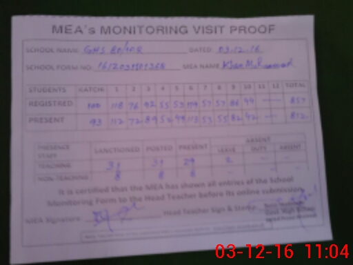 | Certified that this School was Inspected by the Undersigned MEA/DMO Today and the Information Stated Above is as Per Record. | |||||