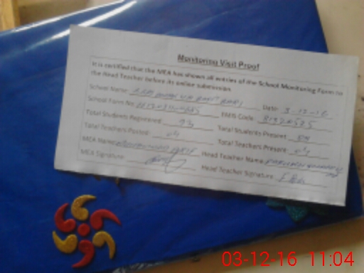 | Certified that this School was Inspected by the Undersigned MEA/DMO Today and the Information Stated Above is as Per Record. | |||||