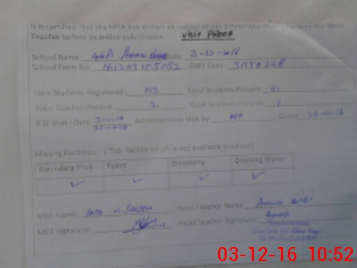 | Certified that this School was Inspected by the Undersigned MEA/DMO Today and the Information Stated Above is as Per Record. | |||||