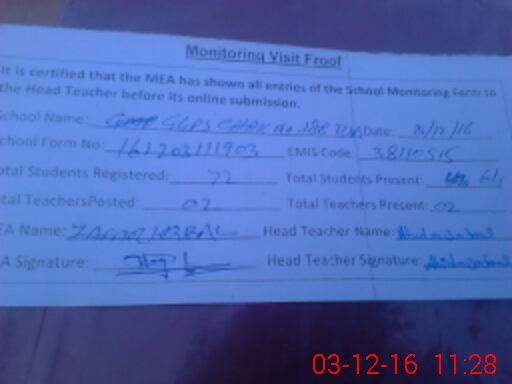 | Attendance Register | Head Teacher | MEA with School | Visit Proof |