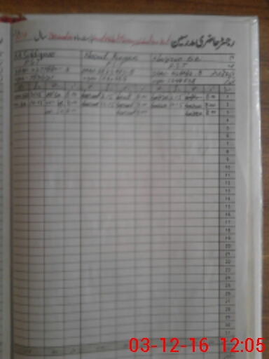 | CNIC | Full Name | Designation | R/C | Absence During Last Calender Month |