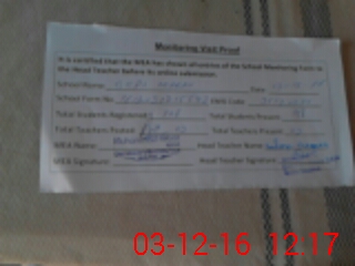 | Attendance Register | Head Teacher | MEA with School | Visit Proof |