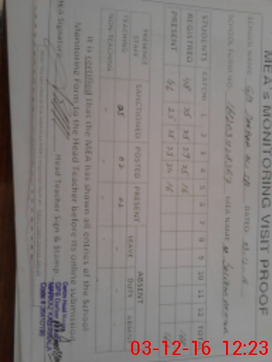 | Attendance Register | Head Teacher | MEA with School | Visit Proof |
