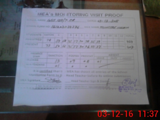 | Attendance Register | Head Teacher | MEA with School | Visit Proof |