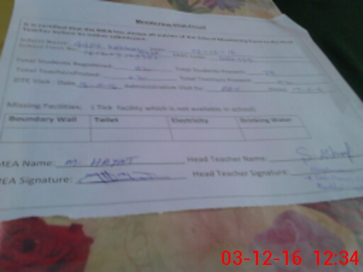 | Certified that this School was Inspected by the Undersigned MEA/DMO Today and the Information Stated Above is as Per Record. | |||||