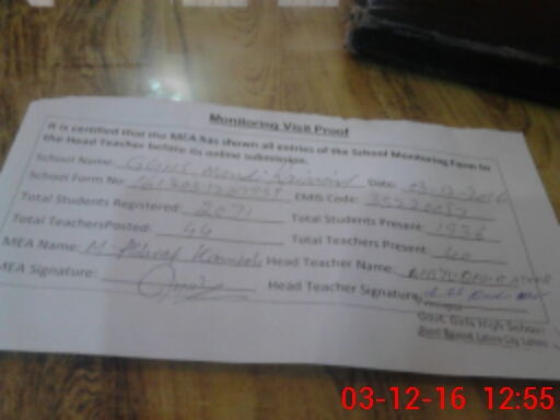 | Certified that this School was Inspected by the Undersigned MEA/DMO Today and the Information Stated Above is as Per Record. | |||||