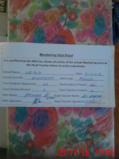 | Attendance Register | Head Teacher | MEA with School | Visit Proof |