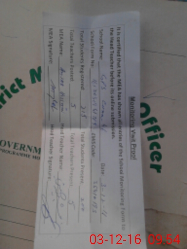 | Attendance Register | Head Teacher | MEA with School | Visit Proof |