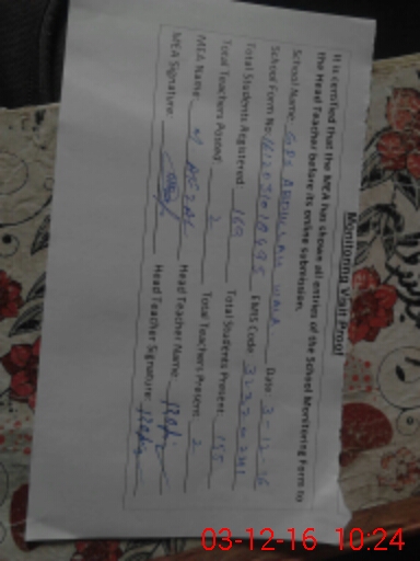 | Attendance Register | Head Teacher | MEA with School | Visit Proof |