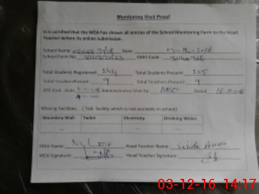 | Certified that this School was Inspected by the Undersigned MEA/DMO Today and the Information Stated Above is as Per Record. | |||||