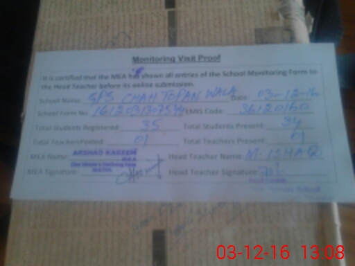 | EMIS Code: 36120160 | Name of School: GPS CHAH TOPAN WALA MUZA NASEER PUR | |||