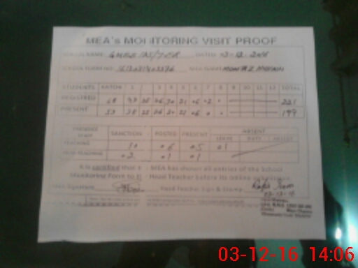 | Attendance Register | Head Teacher | MEA with School | Visit Proof |