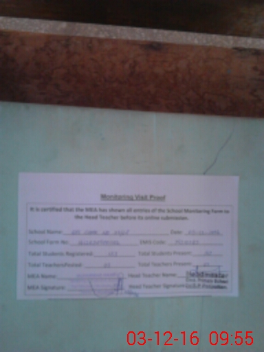 | Attendance Register | Head Teacher | MEA with School | Visit Proof |