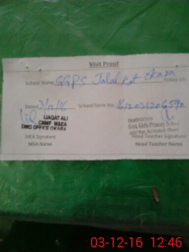 | EMIS Code: 39320657 | Name of School: GGPS JALAL KOT OKARA | |||