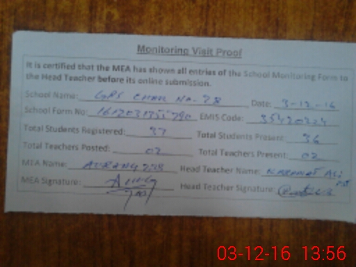 | Certified that this School was Inspected by the Undersigned MEA/DMO Today and the Information Stated Above is as Per Record. | |||||