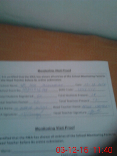 | Attendance Register | Head Teacher | MEA with School | Visit Proof |