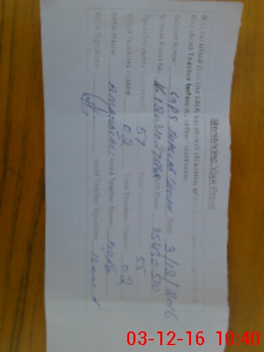 | Attendance Register | Head Teacher | MEA with School | Visit Proof |