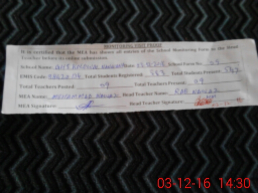 | Attendance Register | Head Teacher | MEA with School | Visit Proof |
