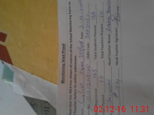 | Attendance Register | Head Teacher | MEA with School | Visit Proof |