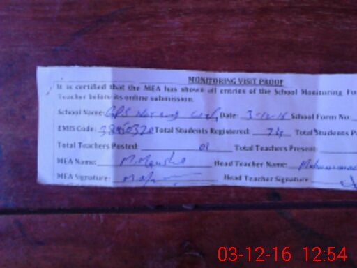 | Certified that this School was Inspected by the Undersigned MEA/DMO Today and the Information Stated Above is as Per Record. | |||||