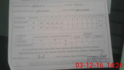 | Attendance Register | Head Teacher | MEA with School | Visit Proof |