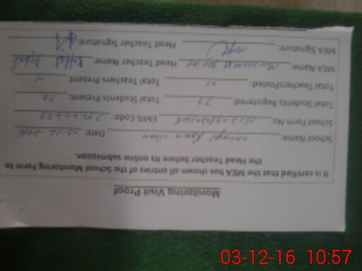 | Certified that this School was Inspected by the Undersigned MEA/DMO Today and the Information Stated Above is as Per Record. | |||||