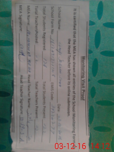 | Certified that this School was Inspected by the Undersigned MEA/DMO Today and the Information Stated Above is as Per Record. | |||||