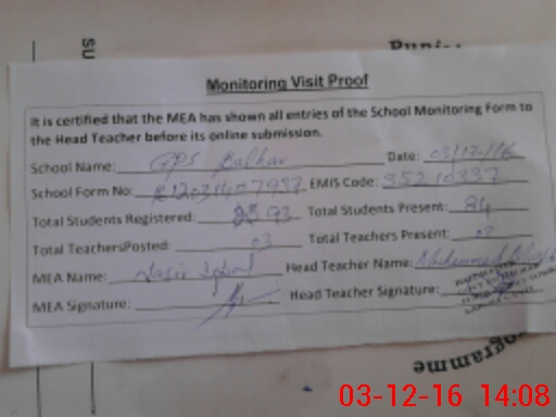 | EMIS Code: 35210337 | Name of School: GPS BALHAR TEHSIL MODEL TOWN | |||