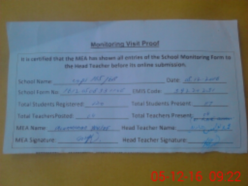 | Certified that this School was Inspected by the Undersigned MEA/DMO Today and the Information Stated Above is as Per Record. | |||||