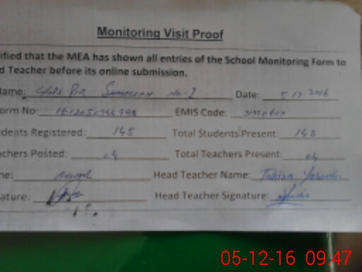 | Attendance Register | Head Teacher | MEA with School | Visit Proof |