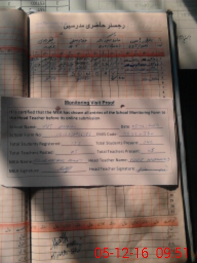 | Attendance Register | Head Teacher | MEA with School | Visit Proof |
