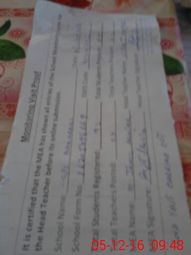 | Attendance Register | Head Teacher | MEA with School | Visit Proof |