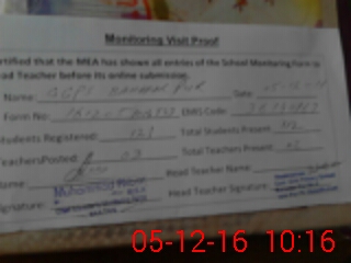 | Attendance Register | Head Teacher | MEA with School | Visit Proof |