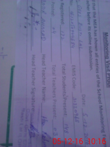 | Certified that this School was Inspected by the Undersigned MEA/DMO Today and the Information Stated Above is as Per Record. | |||||