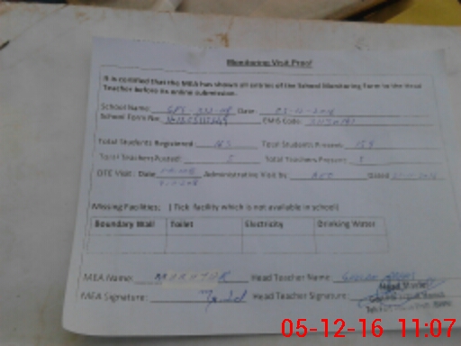 | Attendance Register | Head Teacher | MEA with School | Visit Proof |